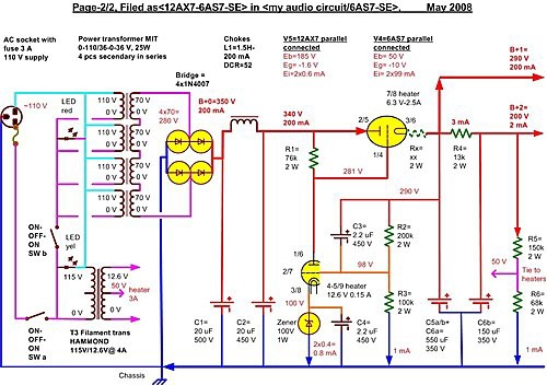 p-2/2電源部分,多加一支6AS7G、一支12AX7做直流供電穩壓,供電內阻會是最低。