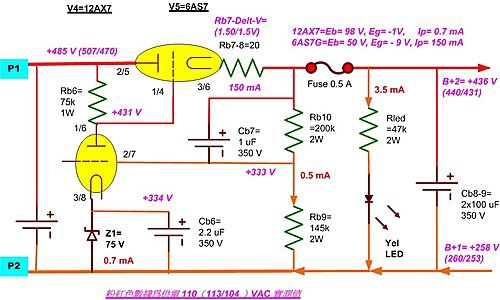 12AX7的Zenner由75V降低為24V,以維持工作電壓。