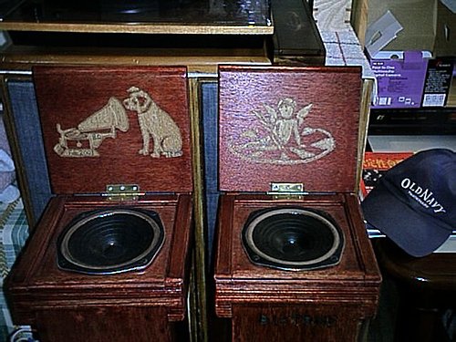 如過再加上直立的金屬導管 25 cm,木頭號角50 cm,總長度就有 一米,100 cm,應該是很有效率的全音號角。