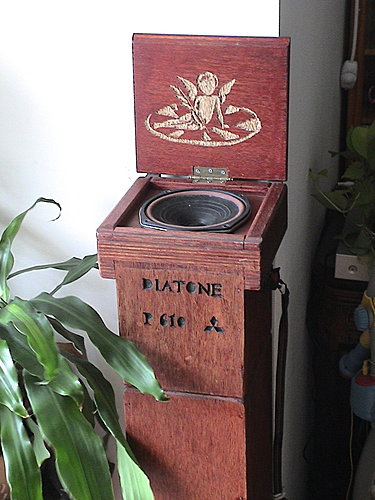 上面的手搖唱機木座的六個立面,坎上風景油畫。