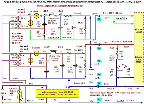 I kHz中心為準時,從MC輸入端到輸出變壓器 output transformer入口的放大倍數是26*60*56*40/10= 350,000, 經過opt減壓1/18後=19,400, 相當 86 dB.