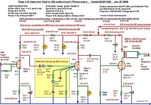 RIAA等化抄自RCA manual, 只是去掉 7025屏極180 pF接地電容。
