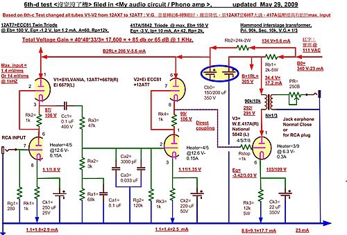 上一篇"實作取義機",採用RCA的補償線路CR-衰減法,是失敗的。因為震盪、工作不穩定。這一篇改用JM低負載的SRPP線路,基本上是成功了。