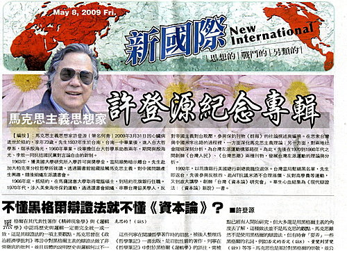 是高二吧,曾經看到他鐵青著臉孔,從訓導處回來,猜想不會是操行不良,而是“思想有問題”,可能是班導師看到週記本裡的蛛絲馬跡,嗅出馬克思的味道來,為了保護 登源,免得愛徒誤入歧途,開導勸說吧?