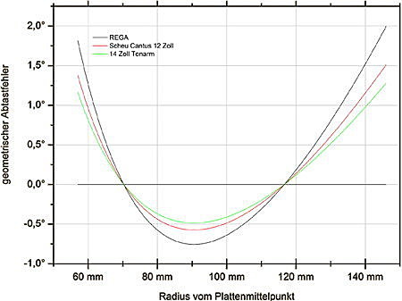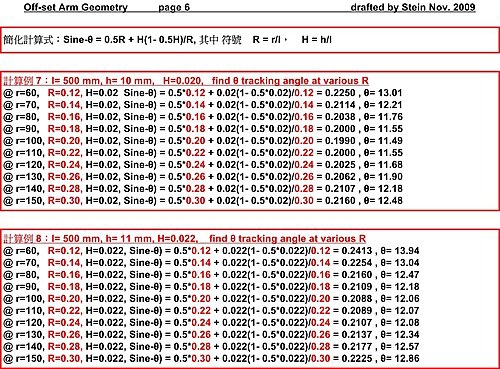 例如250 mm長的唱臂,一個圓週長度是2*3.14*250 = 1570 mm涵蓋 360度,相當 4.36 mm = 1 度 VTA,而500 mm 唱臂可以忍受 8.7 mm = 1 度。