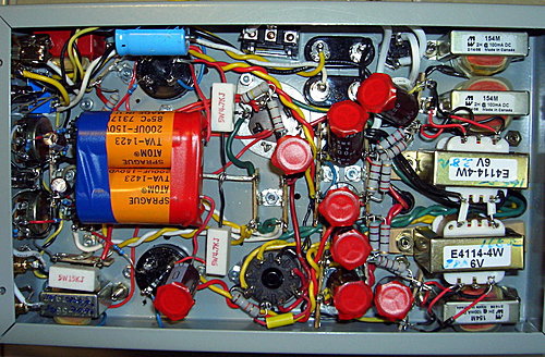 濾波LCLC=choke-resistor-choke-resistor電抗入,不要CLCLC電容入,效果好。 前者還沒濾波之前的高壓直流B+V只拿到x0.9 ACV, 後者卻有x1.2 VAC, 而手上的power transformer 2x265 VAC,作全波整流LCLC只有B+=265x0.9= 240 VDC.