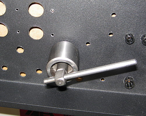 毛頭要修 。 鋁罐電容的孔 可以nibbling tool 車掌用的票剪 」咬」出來。