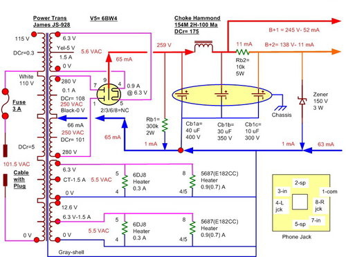 如原先估算的,工作電流,不因為電壓是 112V 或 100 V, 管子是 5687 或 7119 會有大差異。