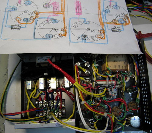 之後想一想,追加一隻 6BM8, 方便 3極部分串起來做SRPP(Seies Regulated Push-Pull,提高放大率,減低5極部分的電流負擔。
